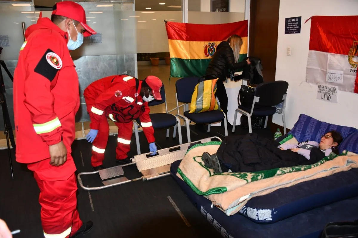 Luego de cumplir casi seis días de huelga de hambre en demanda de la anulación de los contratos para la explotación de litio, la diputada de Comunidad Ciudadana (CC) por Potosí, Mónica Torres, tuvo que ser asistida este martes y retirada de los ambientes de la Asamblea Legislativa por personal de Bomberos.