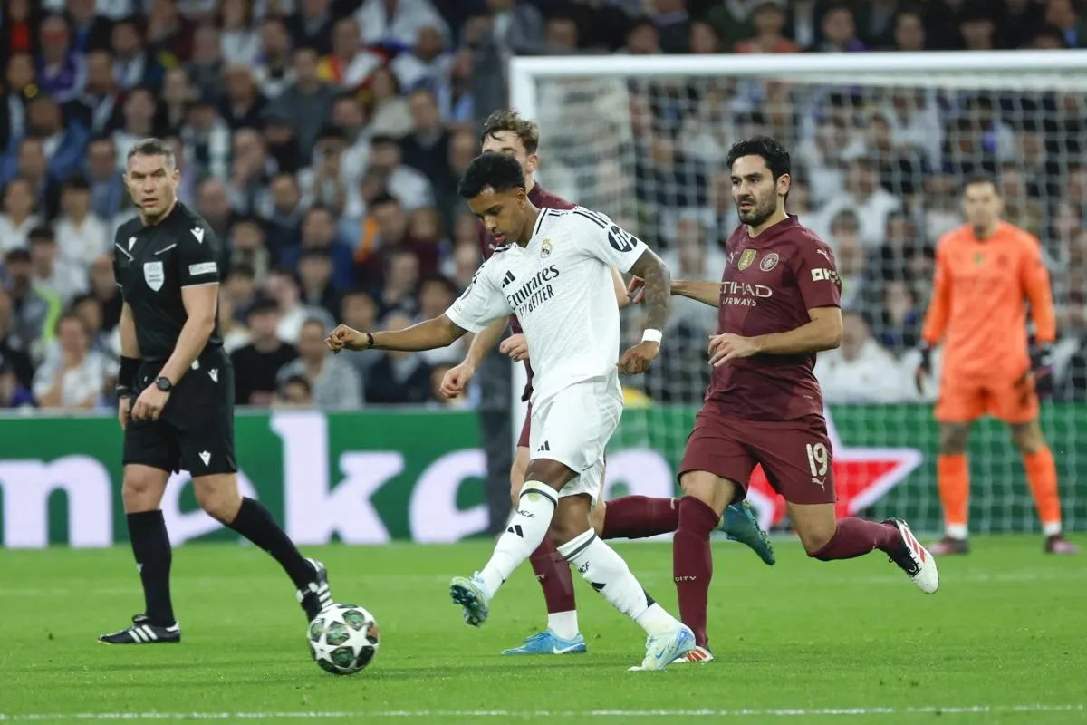 Rodrygo buscó su gol con dos disparos pero era la gran noche soñada de Mbappé. Tras acariciar su triplete lanzándose a un centro de Valverde, tan fiable de lateral como en cualquier demarcación en la que juegue, y después de llevarse un golpe, nada más regresar al campo inventó una bicicleta y un disparo de zurda al palo largo al que no llegó Ederson. El Bernabéu coreó sin cesar el nombre de su nuevo ídolo, el más esperado, que ya decide los días grandes con su demoledora pegada.