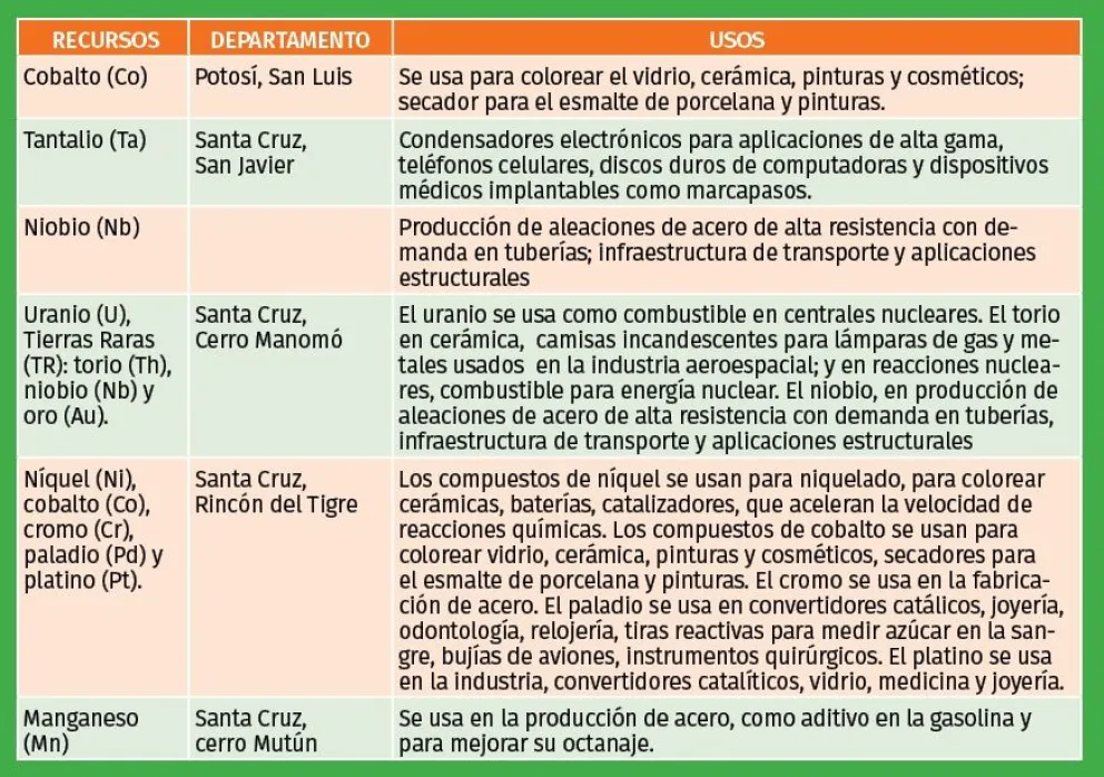 Luego están las tierras raras que el país podría impulsar, pero se necesita exploración. Se tiene potencial en la zona del Rincón del Tigre, en Santa Cruz.