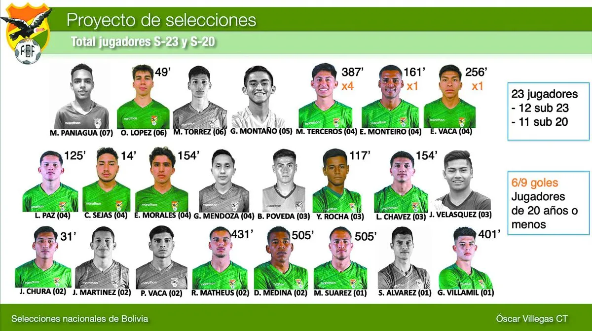 Con un promedio de 25,9 años la Selección boliviana es la cuarta más joven en promedio de edad de la gestión 2024, según datos que maneja el cuerpo técnico en el denominado Proyecto de Selecciones.