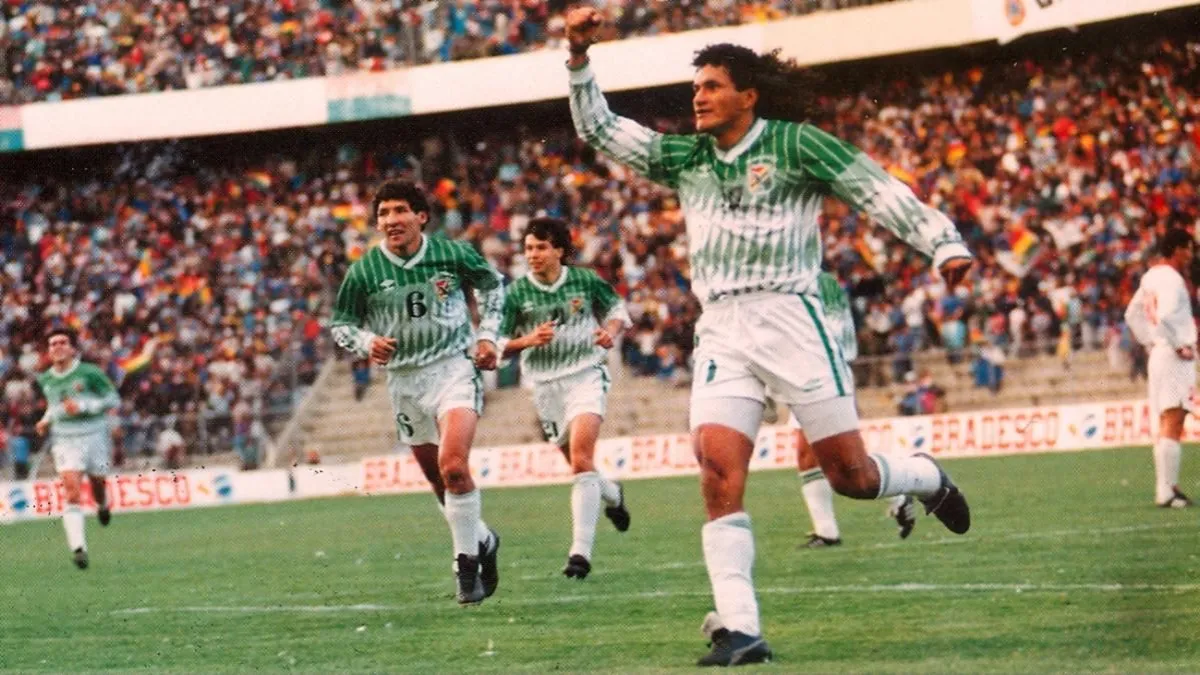 Marco Antonio Etcheverry celebra un gol para Bolivia.