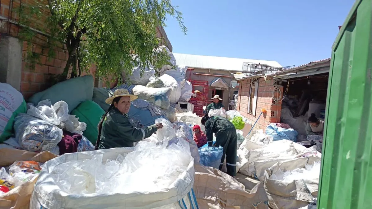 La Asociación Warmis Recicbol, conformada en su mayoría por mujeres en situación de vulnerabilidad, recolecta, recicla bolsas nailon para elaborar la materia prima que servirá luego en la producción de politubos o nuevamente bolsas.