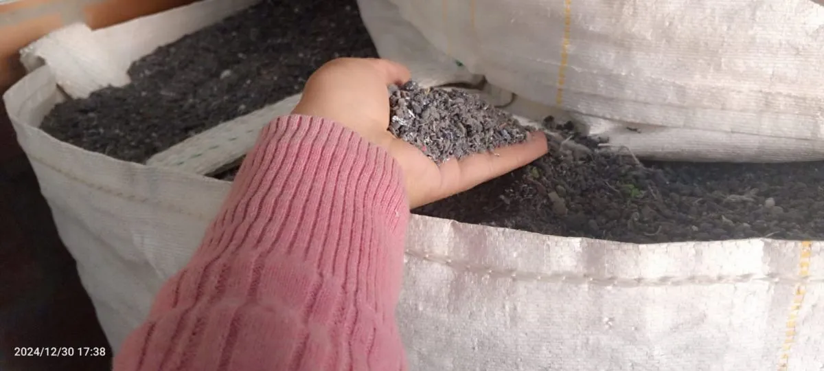 La materia prima obtenida con un proceso de reciclaje por Warmis Recicbol. Foto: Warmis Recicbol