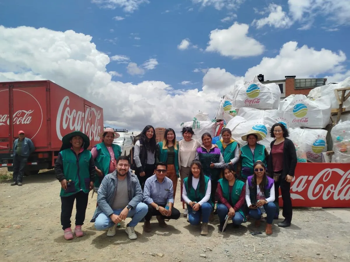 Miembros de la asociación junto a personal de Coca Cola. Foto: Warmis Recicbol