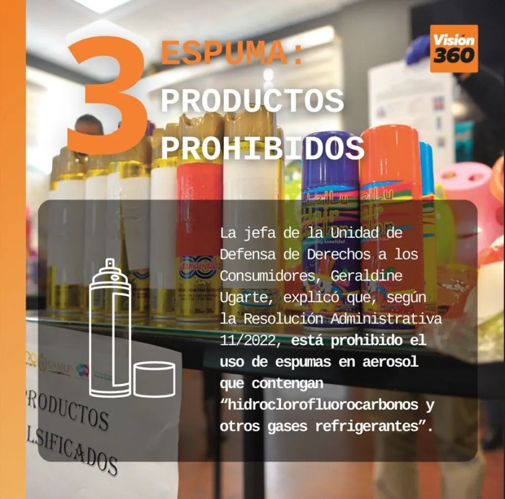 3. La jefa de la Unidad de Defensa de Derechos a los Consumidores, Geraldine Ugarte, explicó que, según la Resolución Administrativa 11/2022, está prohibido el uso de espumas en aerosol que contengan “hidroclorofluorocarbonos y otros gases refrigerantes”.