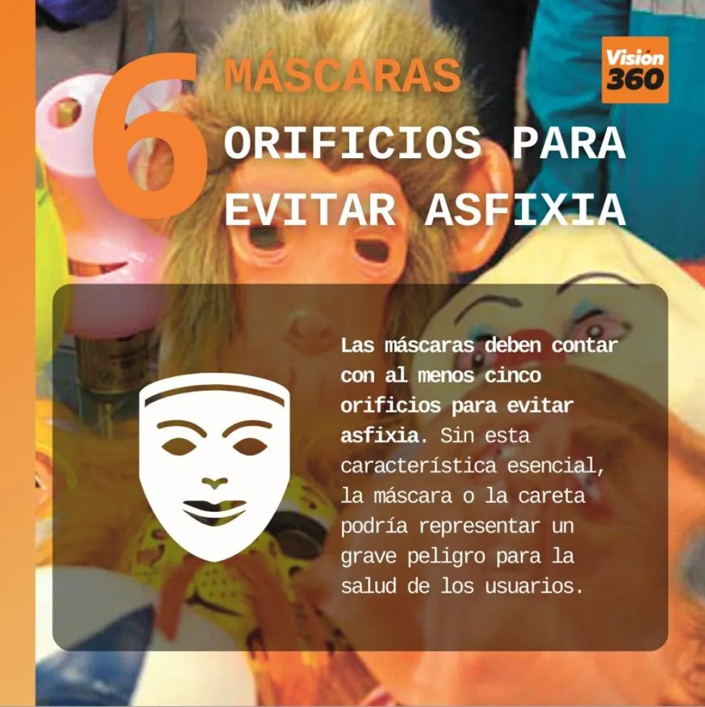 6. Las máscaras deben contar con al menos cinco orificios para evitar asfixia. Sin esta característica esencial, la máscara o la careta podría representar un grave peligro para la salud de los usuarios.