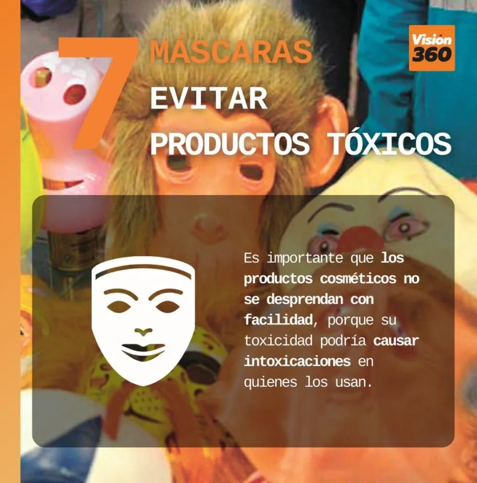 Además, Quispe advirtió sobre los riesgos asociados a las máscaras de goma y los maquillajes sin certificación sanitaria.  “Recomendamos que estas tengan cinco orificios”, dijo.