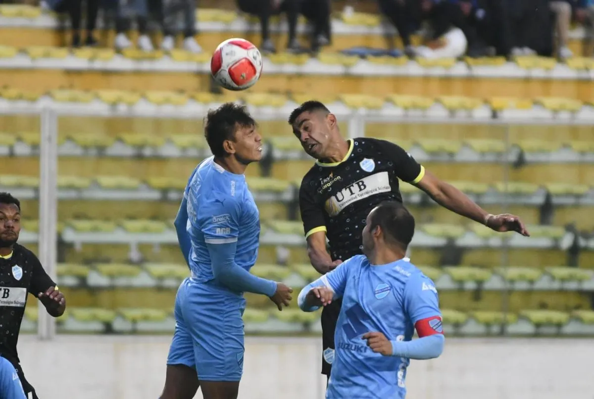 Lucha aérea por la pelota entre Bolívar y Aurora. Foto: APG.