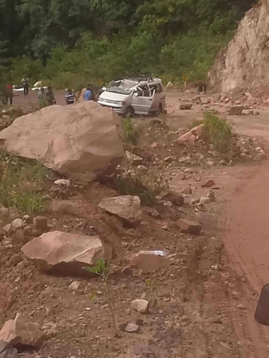 Dos personas, el chofer y un pasajero, perdieron la vida cuando una roca cayó sobre un vehículo de transporte público en el que se trasladaban, en la cuesta San Simón, en la vía Entre Ríos- Palos Blancos en la ciudad de Tarija.