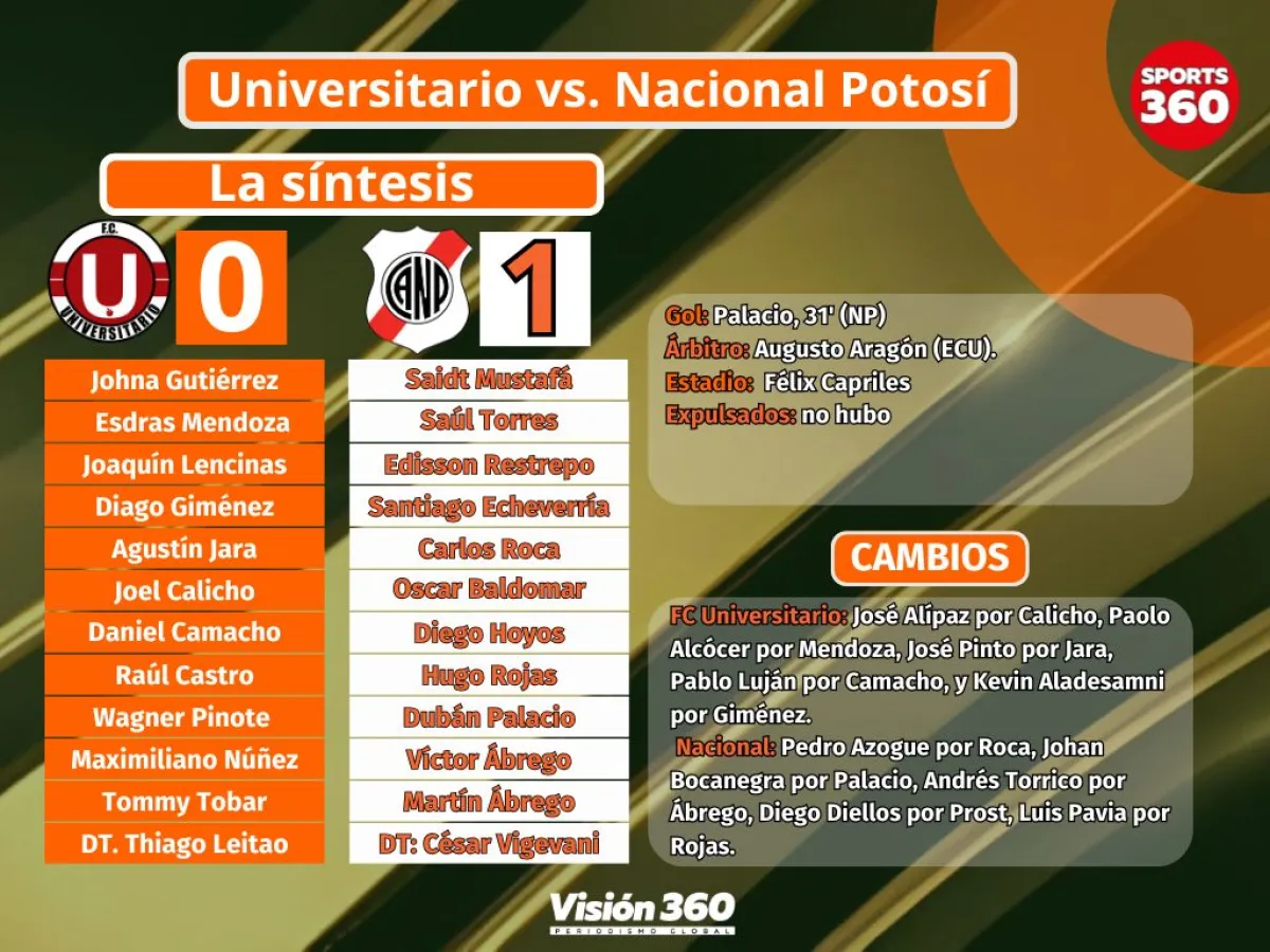 Un golazo desde unos 40 metros anotado por el colombiano Dubán Palacio le dio la clasificación a Nacional Potosí a la fase de grupos de la Copa Sudamericana. El conjunto de la Villa Imperial se impuso 0-1 a FC Universitario este martes en el estadio Félix Capriles, en cotejo de la fase preliminar.