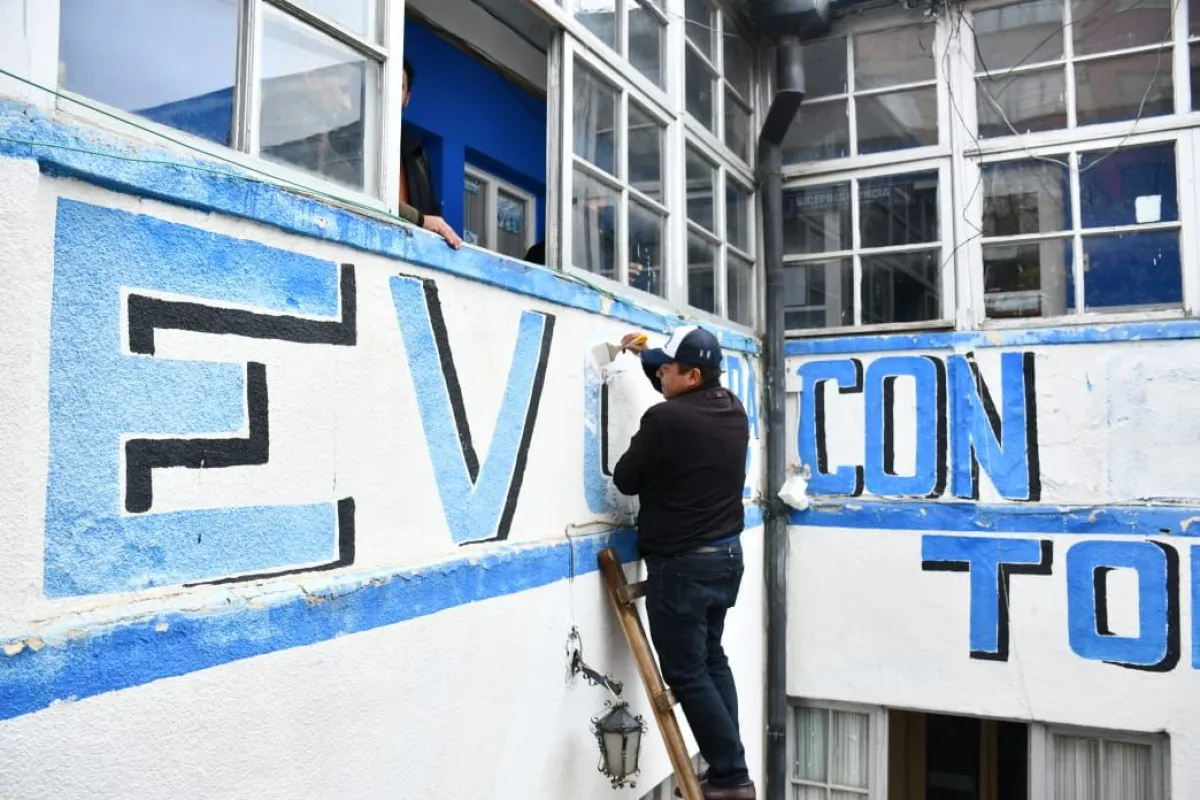Los movilizados también procedieron a pintar las paredes donde había mensajes relacionadoscon Morales. De igual forma, pintaron de blanco las imágenes del exmandatario que había en la pared del patio de esa sede.