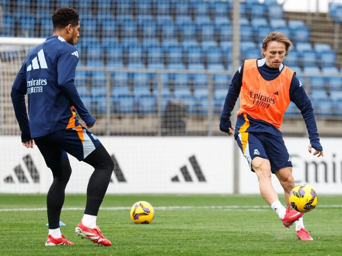 Bellingham (izq.) y Modric en una práctica del club merengue. Foto: Real Madrid.