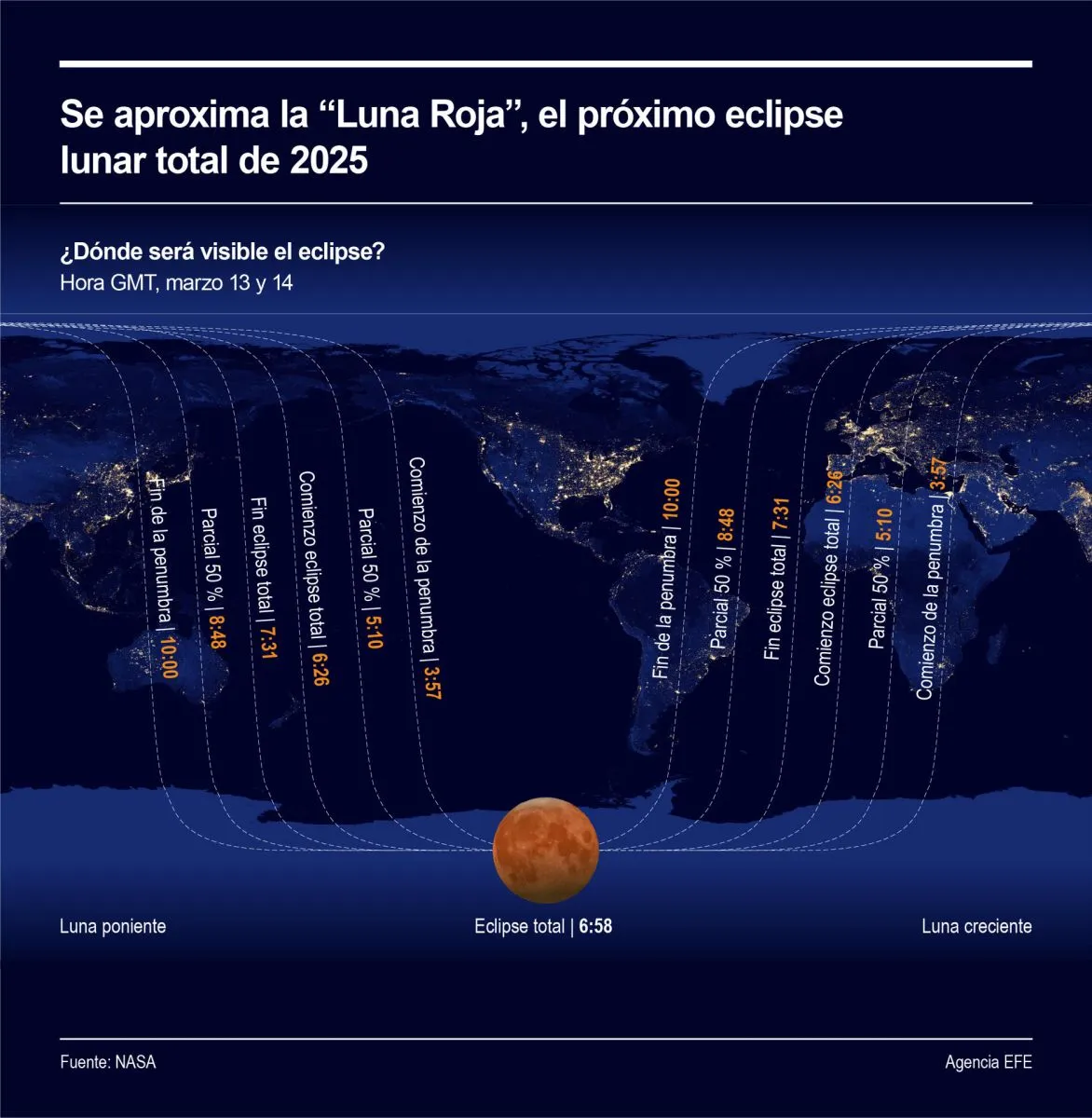 El mundo se prepara para un nuevo eclipse lunar. Infografía: EFE