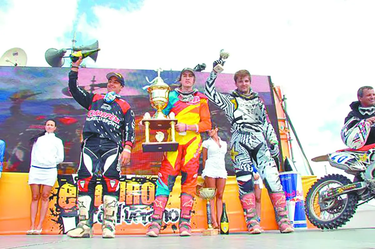 El piloto nacional (centro) tras ganar el Enduro de Verano 2012. Foto: Daniel Nosiglia.