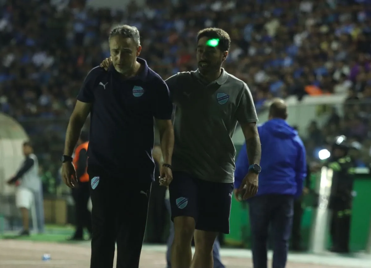 Se fue al túnel, desde donde vio el cotejo junto al técnico de Blooming, Mauricio Soria, que debía cumplir con un partido de suspensión.