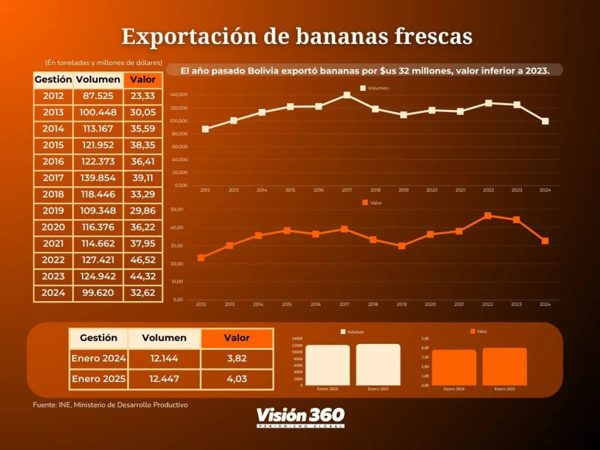 La exportación de banano al mercado argentino está paralizada, debido a los bloqueos, la falta de combustible para sacar la producción, advirtió el presidente de la Cámara Agropecuaria de Cochabamba, Rolando Morales.