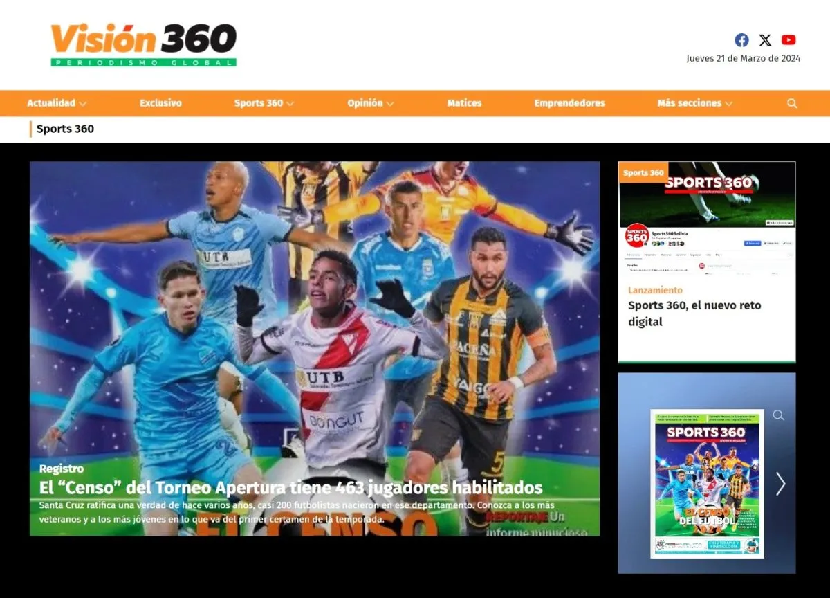 Captura de la primera nota y portada publicada en Sports 360 el 21 de marzo de 2024.