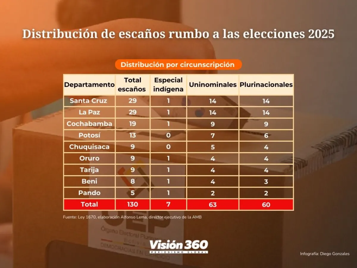 Con el censo, Santa Cruza ganó una representación para alcanzar 29 escaños como en La Paz, Cochabamba 19, Potosí 13, Chuquisaca 9, Oruro 9, Tarija 9, Beni 8 y Pando 5.