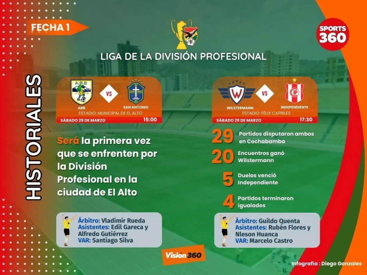 También este sábado, en el segundo día de competencia del torneo de la Liga de la División Profesional, jugarán Wilstermann e Independiente de Sucre en el estadio Félix Capriles de Cochabamba.