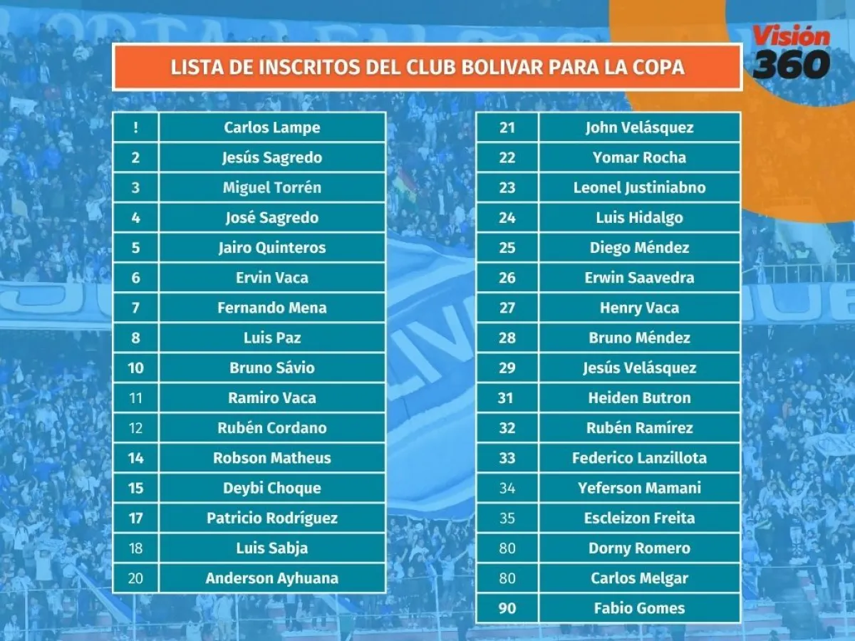 La Conmebol repara su error en su sitio web y ahora consigna a 33 jugadores inscritos por Bolívar para la fase de grupos de la Copa Libertadores de América que arranca el martes. Esta mañana, no se contemplaba en la nómina al dominicano Dorny Romero, el portero Diego Méndez, entre las ausencias más importantes y sólo aparecían 27 jugadores.