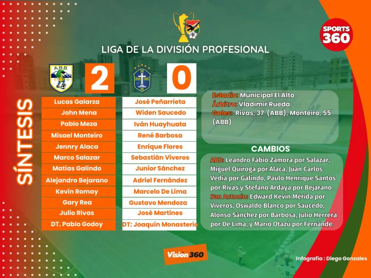 Pudo aumentar la cuenta ABB a los 92 minutos con un tiro desde unos 35 metros de Romay que vio adelantado a Peñarrieta; pero el arquero retrocedió a tiempo y mandó la pelota al tiro de esquina.