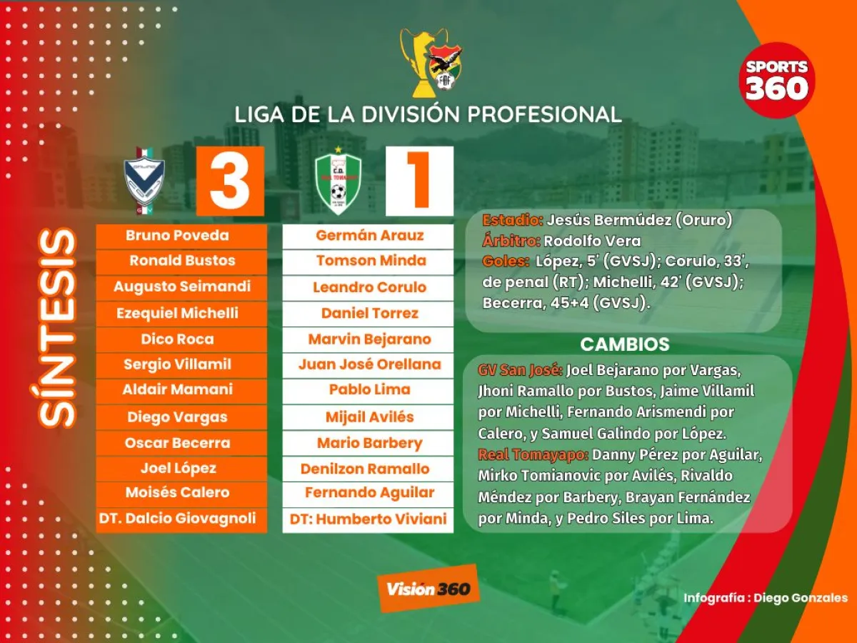 GV San José derrota a Real Tomayapo con goles anotados en el primer tiempo