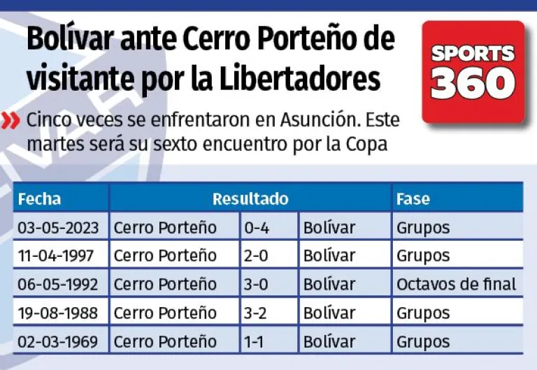 Con el grato recuerdo de haber goleado en su última visita a Cerro Porteño en 2023 (0-4), Bolívar comenzará este martes (18.00 HB) su andadura en la fase de grupos de la Copa Libertadores de América ante el club paraguayo, que al mismo tiempo significará su sexto encuentro con este rival en el vecino país.