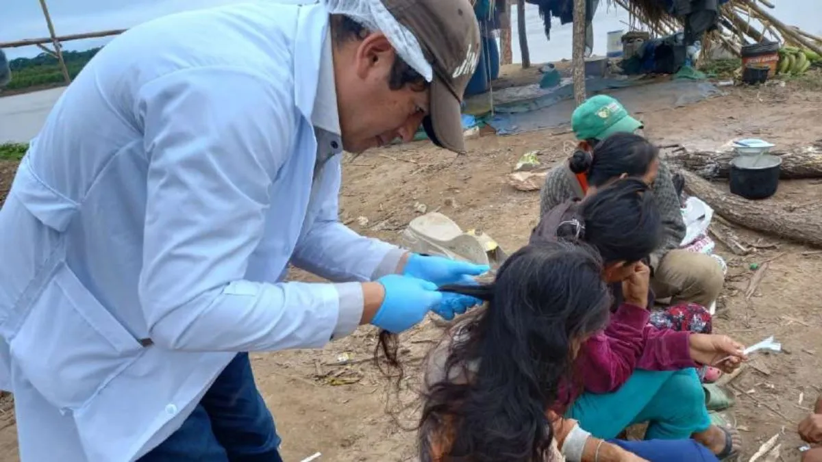Toma de muestras en cabello, en el Norte de La Paz.    Foto: CPILAP