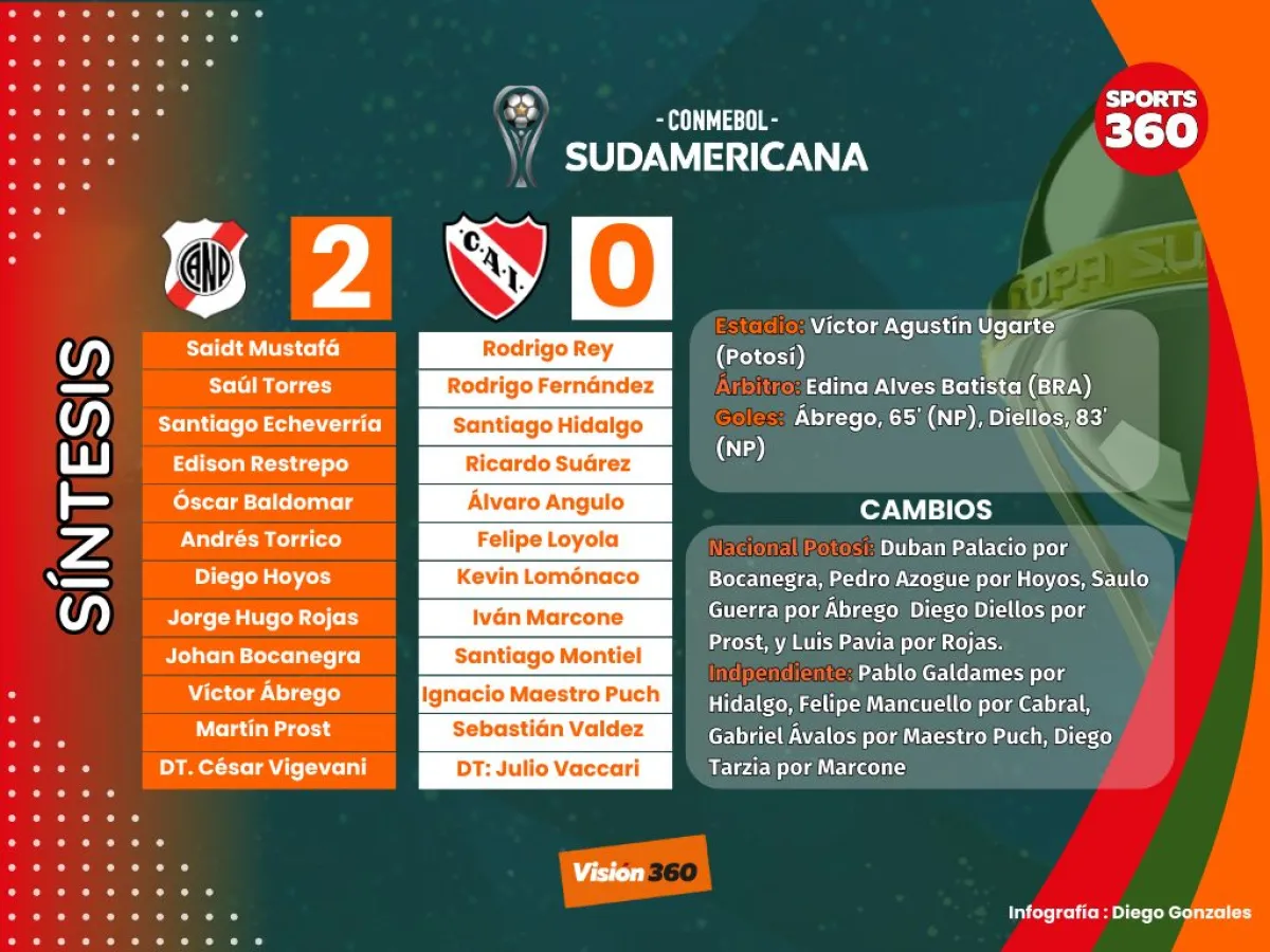 Nacional Potosí tuvo que redoblar esfuerzos para superar a un duro Independiente de Argentina por 2-0 en el inicio del Grupo A de la Copa Sudamericana, bajo un diluvio este martes en el estadio Víctor Agustín Ugarte de la Villa Imperial.