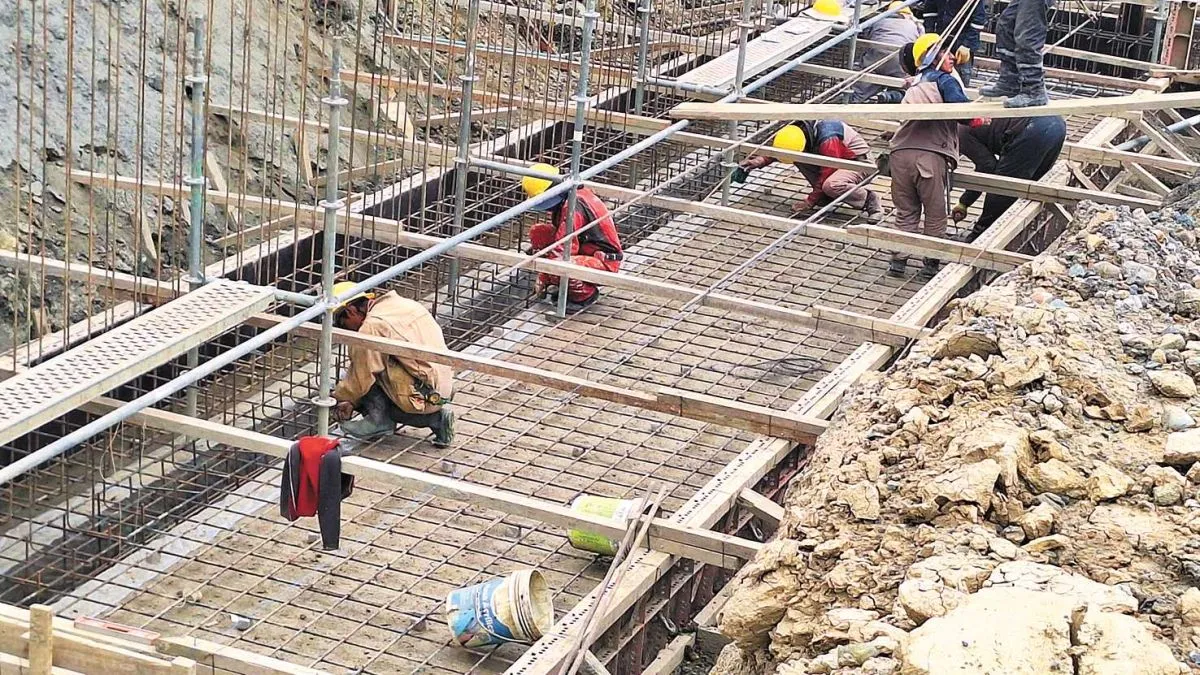 Varios obreros trabajan en la construcción de los cimientos de la Casa de la Verde. Foto: Jorge Asturizaga