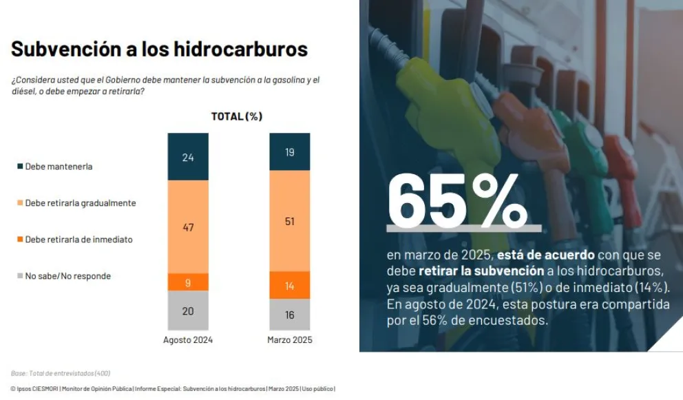 El boletín de Ciesmori recuerda que en agosto de 2024, el 56% de los encuestados se inclinaba por el retiro de la subvención. Sin embargo, para marzo de 2025, esta cifra ascendió al 65%, lo que indica un creciente consenso en la forma en que se pueda dar una solución a esta problemática.
