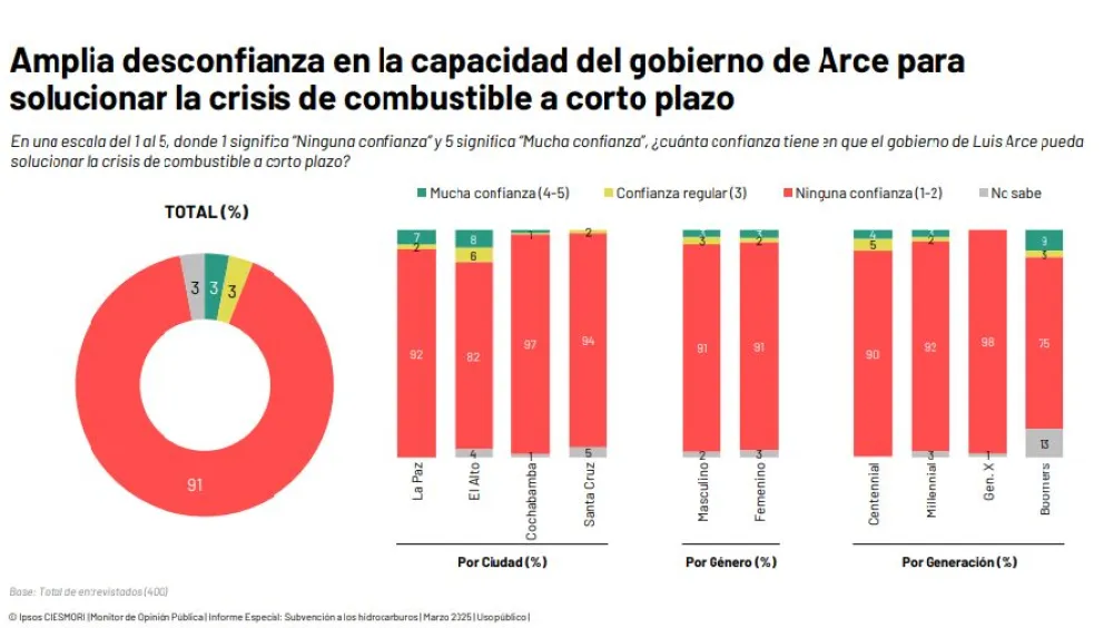 El análisi del tema, según la empresa, deja como conclusión que se observa una creciente preocupación entre la población "la gestión de la crisis de combustible y la efectividad del gobierno en abordar este problema", ya que la mayorís se mostró a favor de retirar las subvenciones a los hidrocarburos, aunque la confianza en el gobierno para manejar la situación es baja".