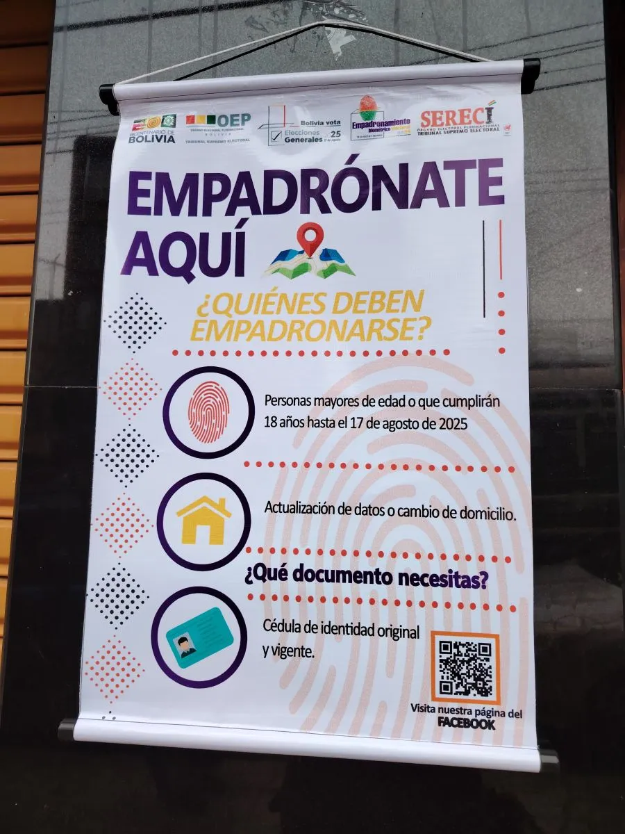 “Por favor no esperen a último momento, evitemos las filas. Para no tener aglomeraciones tenemos seis megacentros habilitados en La Paz: en la zona central tenemo este de la Landaeta y 120 de octubre, en la Iglesia Metodista; Tenemos otro en San Pedro, en la calle Boquerón, frente a la plaza Israel; en el Cementerio, el megacentro del Salon de Eventos; en la Buenos Aires, el salón de eventos Libertad en Bajo Tacagua; en Miraflores tenemos el Salon de Eventos Rubí, a la altura de la Plaza Villarroel; y en la zona sur hay un punto de empadronamiento en el Megacenter”, detalló Bazán.