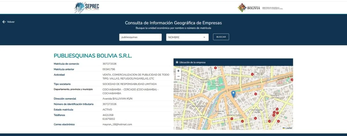 La empresa está representada legalmente por Oscar Charella Chinchilla. Cuenta con una matrícula de comercio renovada y tiene inscrita como su sede principal la ciudad de Cochabamba.