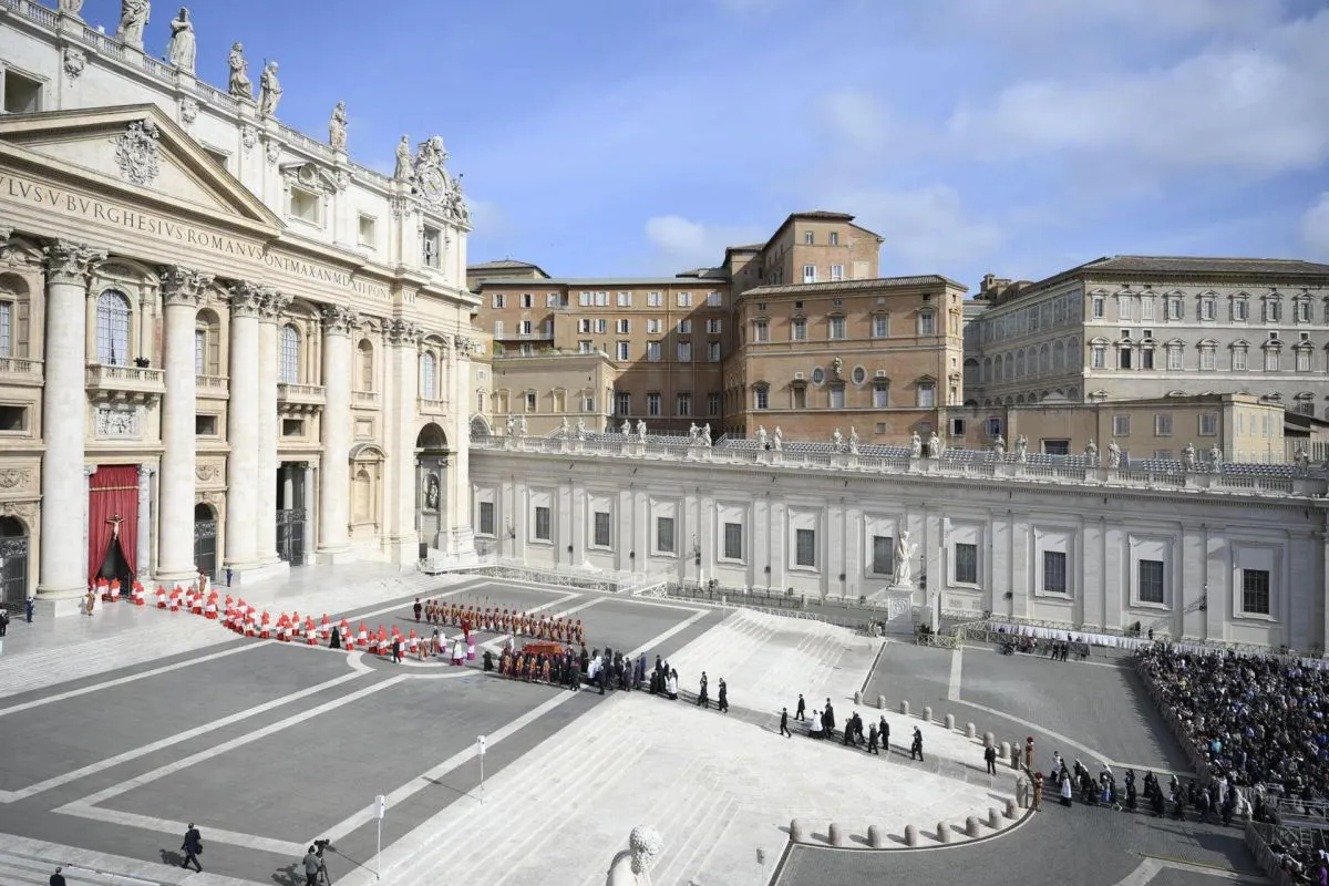 El ataúd con los restos mortales de Francisco recorrió en una procesión la plaza de Santa Marta, la plaza de los Protomartires Romanos y atravesó el Arco de las Campanas hasta salir a la plaza de San Pedro y entrar en la Basílica Vaticana por la puerta central.