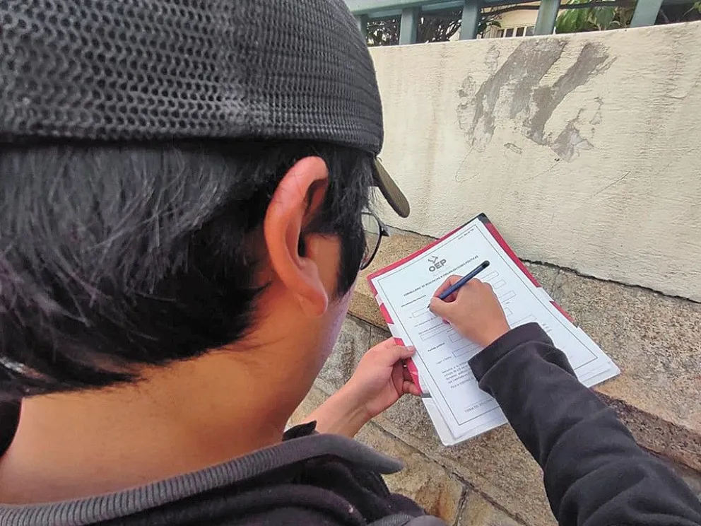 Un ciudadano comienza a llenar su formulario, tras su llegada. Foto: Paulo Lizárraga / Visión 360
