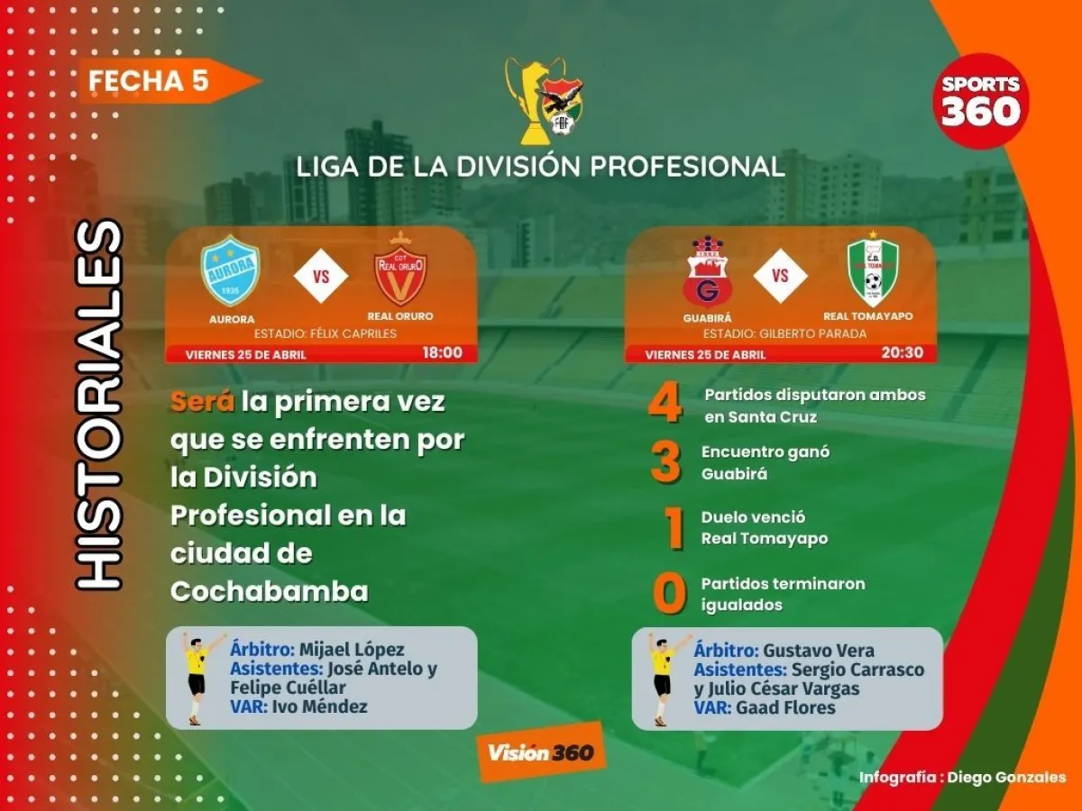 Aurora, que inició el campeonato con menos 33 puntos por una resolución del Tribunal de Disciplina Deportiva (TDD), y Real Oruro, uno de los tres clubes que todavía no ha ganado en la Liga de la División Profesional, se enfrentan este viernes en el primer partido de la jornada 5.