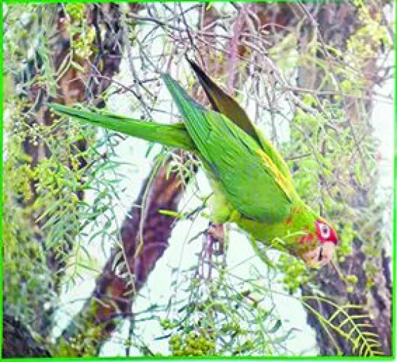 Un loto (Psittara mitratus) come un fruto del molle. FOTO: Dónovan Osorio / UTB