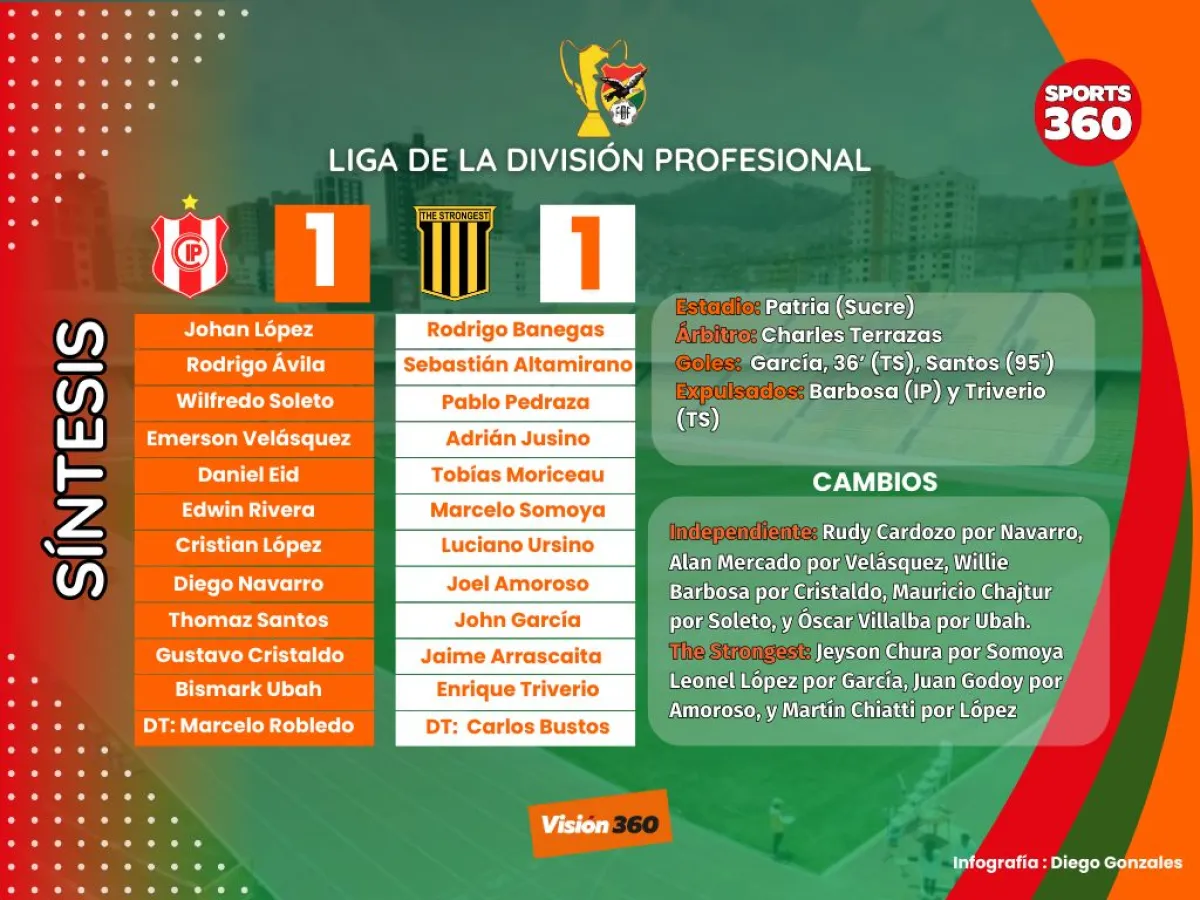 Independiente logró rescatar una unidad en su cancha del estadio Patria de Sucre, al empatar 1-1 con The Strongest, este sábado por la quinta jornada del torneo Liga de la División Profesional.