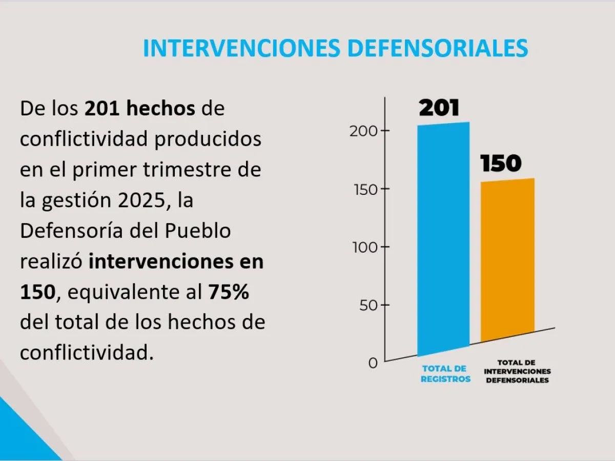 Defensoría del Pueblo registra 201 conflictos en el primer trimestre, La Paz es la ciudad más afectada, con 74