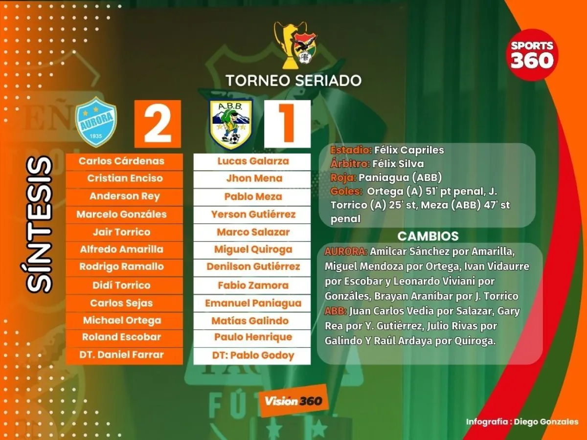 Aurora comenzó con el pie derecho el torneo seriado al vencer con dificultad por 2-1  a ABB en partido correspondiente al grupo C que se disputó en el estadio Félix Capriles de Cochabamba.
