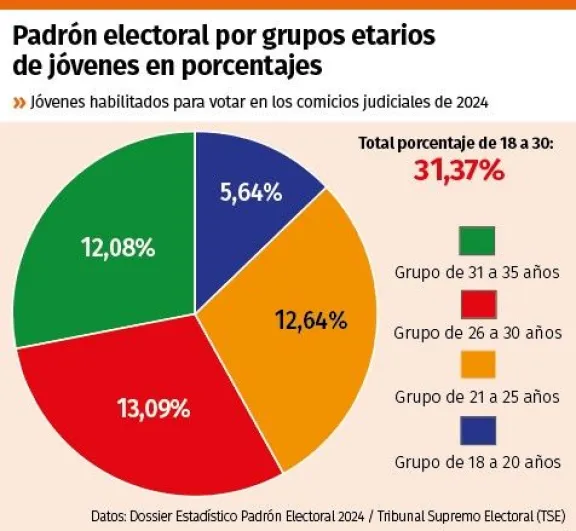 Los partidos políticos que terciarán en las próximas elecciones del 17 de agosto tienen un gran desafío, que es conquistar el voto de los jóvenes. De acuerdo con el Padrón Electoral 2024, el grupo etario comprendido entre 18 y 30 años de edad alcanza a 2.302.056 personas, lo que significa el 31,37% del total de la población habilitada para sufragar que fue de 7.334.435.