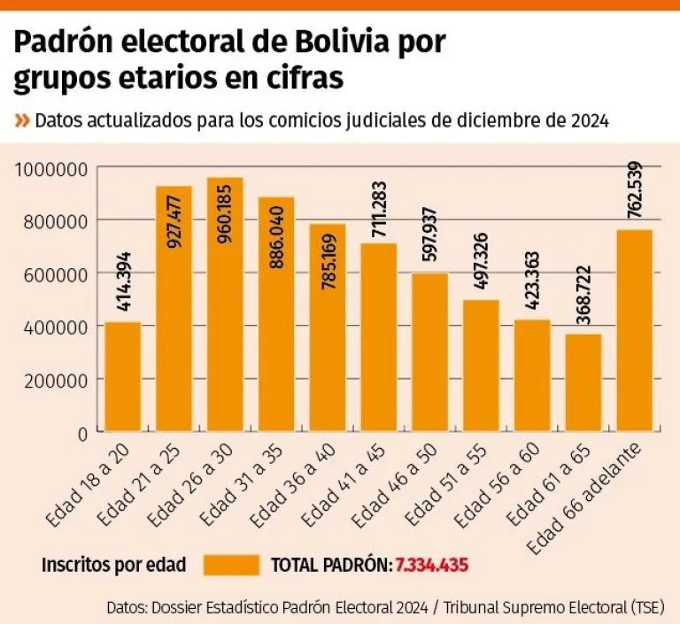 De acuerdo con la Ley 342 de febrero de 2013, promulgada en el gobierno del entonces presidente Evo Morales (2006-2019) se considera joven a la población comprendida entre los 16 y 28 años de edad, aunque el padrón elaborado por el Tribunal Supremo Electoral (TSE) toma en cuenta a los jóvenes desde los 18 años de edad, porque ya pueden emitir su voto, y a partir de ahí separa por rangos de cinco en cinco años.