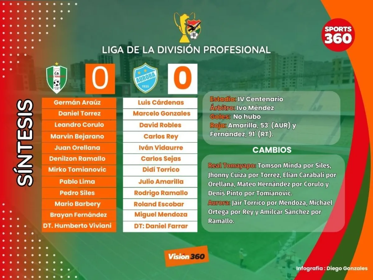 Con 10 hombres en casi todo el segundo tiempo y gracias a un buen desempeño del golero Luis Cárdenas, Aurora logró sumar en condición de visitante al empatar sin goles este sábado por la noche en Tarija contra Real Tomayapo en el marco de la sexta fecha del torneo Liga de la División Profesional.