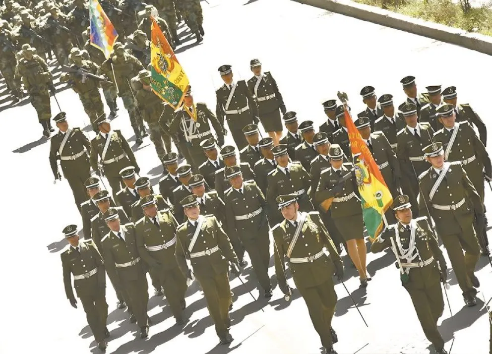 El desfile de un contingente policial. Foto: Policía Boliviana