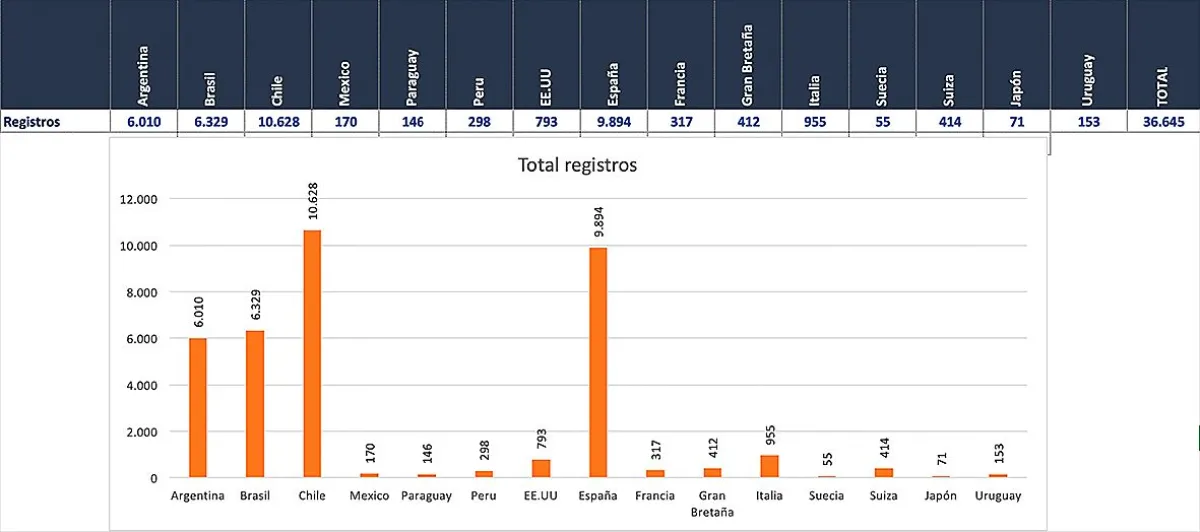 En el exterior del país, donde el proceso se lleva adelante en 15 países, se contabilizaron 36.645 registros, que incluyen tanto nuevas inscripciones como cambios de domicilio. Los países con mayor cantidad de registros son Chile, España, Brasil y Argentina, donde reside una importante comunidad boliviana.