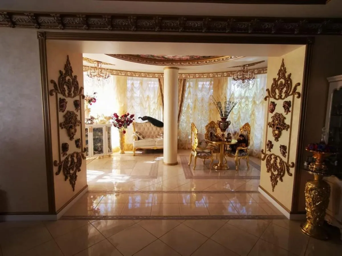 En las redes sociales rusas circularon fotos que mostraban la mansión, diseñada de un modo absolutamente ecléctico y extravagante con muebles antiguos, espaciosas salas con amplios ventanales y columnas de diversos estilos, todas con pátinas doradas.