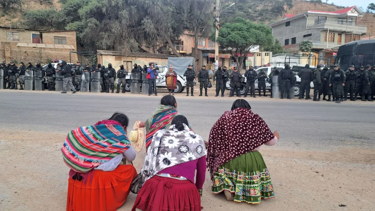 La tensión crece en la zona mientras se espera el arribo de la caravana proveniente del Trópico de Cochabamba, bastión político del exmandatario. La presencia policial fue calificada por el diputado  Héctor Arce como “un acto de amedrentamiento”.