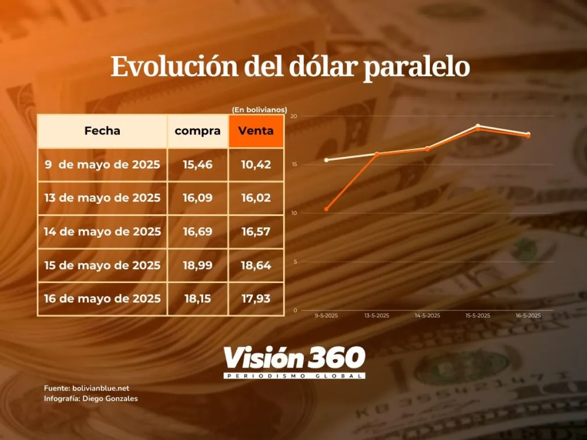 La cotización paralela, este viernes, se situó en 18,15 bolivianos. El dólar sube por incertidumbre y mayor demanda de la gente, de las empresas y por caída de las exportaciones.