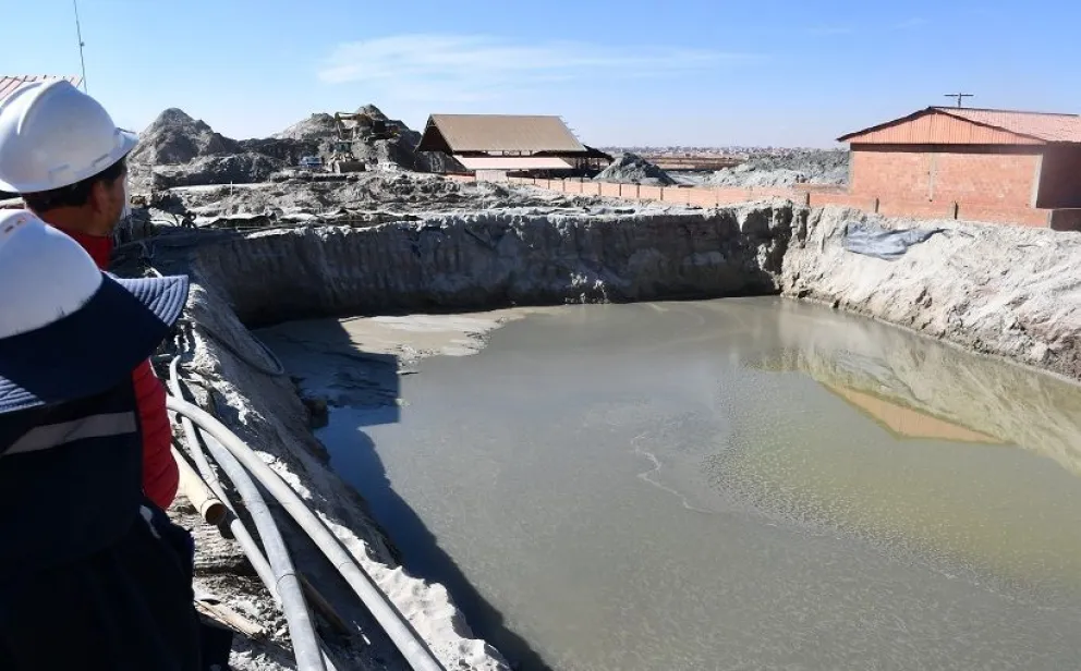 Los funcionarios que realizaron una inspección observan una fosa de sedimentación. Foto: GAMV